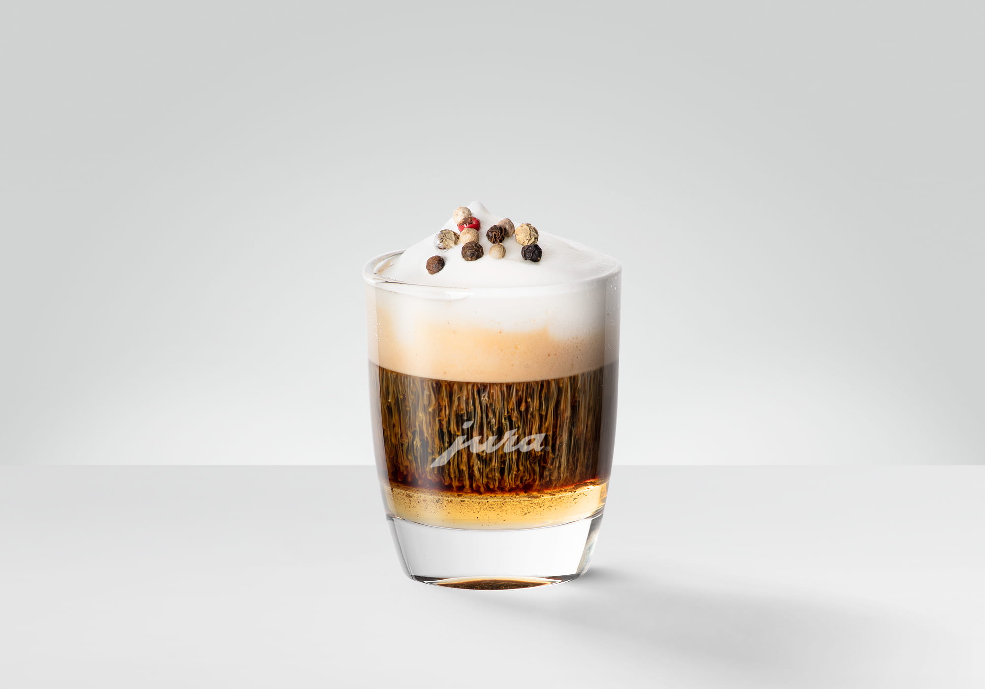 Decorare la specialità di caffè con un pizzico di pepe. Suggerimento: mescolare bene la bevanda prima di gustarla.
