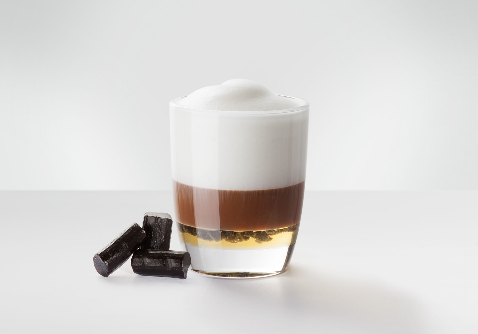 Mescolare delicatamente la specialità di caffè prima di gustarla e cospargere la schiuma di latte con un po' di polvere di liquirizia.